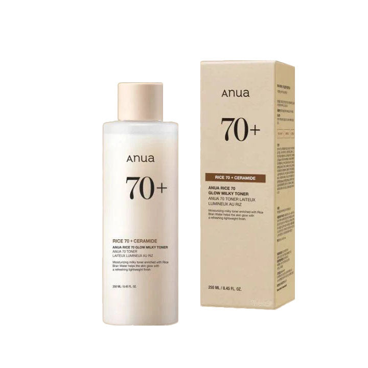 Enjoy a radiant and hydrated complexion with the Anua Rice 70 Glow Milky Toner, a lightweight, fragrance-free formula enriched with 70% rice bran water and niacinamide. This toner effectively brightens uneven skin tone and regulates sebum production, resulting in a clear and luminous complexion. Enriched with Ceramide AP and NP, it soothes irritation and strengthens the skin barrier, while sodium hyaluronate and betaine provide deep hydration and reduce inflammation, making it ideal for sensitive skin. The milky texture absorbs quickly and refreshes your skin - without leaving a sticky residue. Suitable for all skin types, this toner is your ideal companion for a smooth and radiant finish.