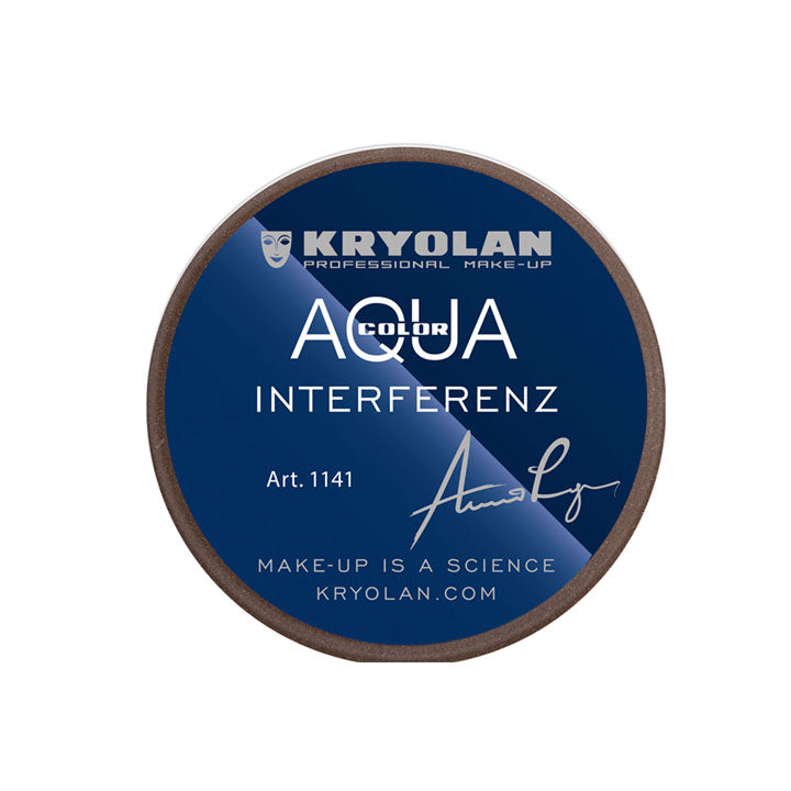 Aquacolor Interferenz is an iridescent glycerin-based compact make-up, containing no metallic pigments, with pearlescent effects for creation of captivating make-up impressions on face and body. Application is effortless, with an only slightly moistened make-up sponge or brush. After drying, it can be gently buffed with a soft towel or with the hand - but is not powdered. Fixing spray is recommended if the make-up will be subjected to extreme conditions. Aquacolor Interferenz is extensively smudge-proof and can be easily removed with soap and water. In addition to the classical color nuances of gold, silver, copper and bronze, Aquacolor Interferenz offers a large assortment of vivid, iridescent colors.