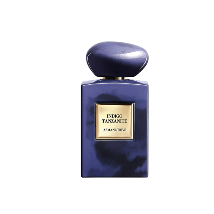 Discover Armani/Prive's new mesmerizing haute couture fragrances Indigo Tanzanite a tribute to the spectacular, vivid colors of Africa. Indigo Tanzanite is an evocation of the mysterious aura of the Tanzanian plains, and their sumptuous skies at night, reminiscent of tanzanite's intense purple-blue color in a dark yet enchanting composition