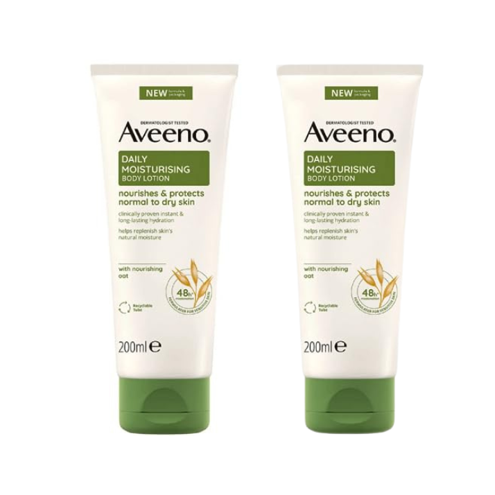Details: Aveeno Daily Moisturizing Body Lotion contains natural colloidal oatmeal blended with rich emollients and is clinically proven to moisturize for a full 24 hours.