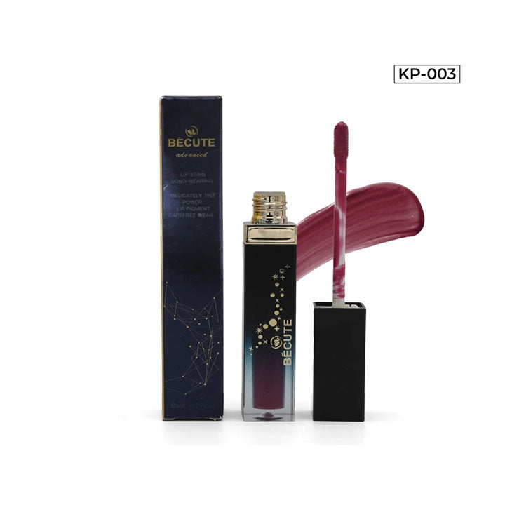 Becute Cosmetics Lip Stain Long Wearing Lip Gloss #KP-003 adds vibrant color to your lips that lasts all day. Easy to apply, this stain enhances your natural beauty for a fresh and confident look.