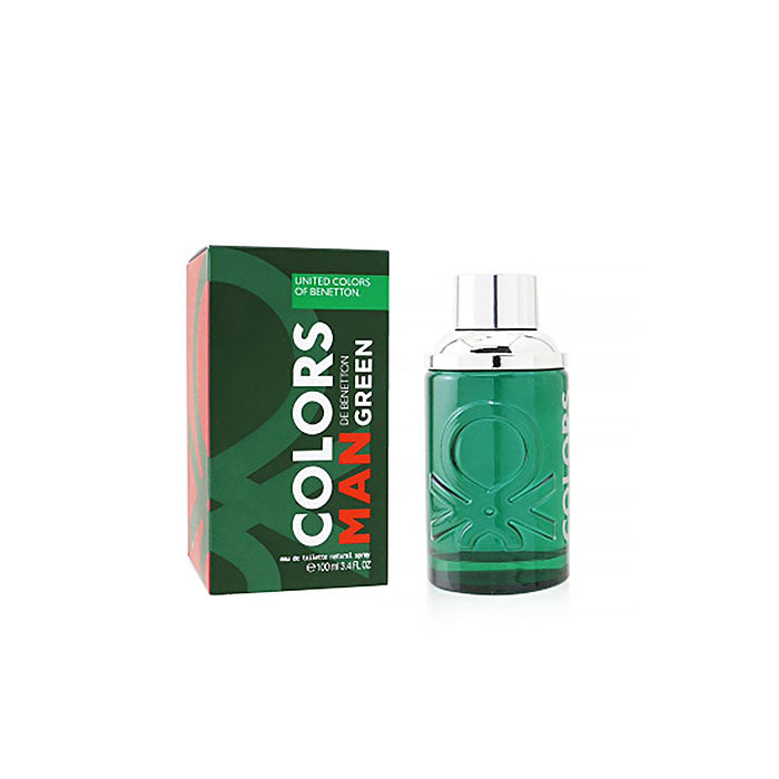 Benetton's Colors Green Eau De Toilette Spray for Men. This 3.4 oz fragrance is a blend of captivating essences that create an invigorating and uplifting sensory experience. A testament to Benetton's excellence, Colors Green is designed to evoke a feeling of freshness and vibrancy. this citrus woody fragrance opens with the bright and zesty tones of Bergamot, the sharp kick of Black Pepper, and the unique aroma of Coriander - a combination that's fresh, spicy, sweet, and luminous. The heart notes consist of the Mediterranean Myrtle and Cypress, lending a green and slightly woody edge that's both intriguing and energizing