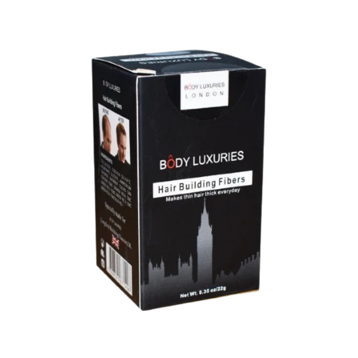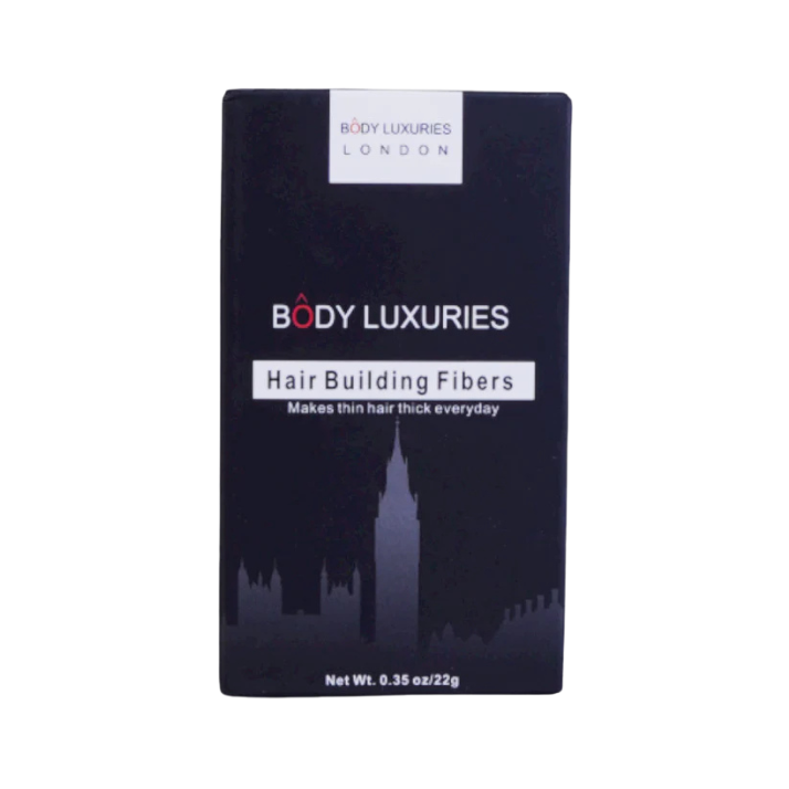 HEALTH & BEAUTY HAIR OIL BODY LUXURIES Weight: 22GM. Introducing the ultimate solution for thinning hair! Our BODY LUXURIES BLACK HAIR BUILDING FIBERS instantly create thicker, fuller-looking hair with just one application. Whether you're looking to add volume or cover up bald patches, our easy-to-apply fibers will give you the confidence you need to rock any hairstyle. Our specially formulated natural keratin fiber resists wind and rain, so your new look will stay in place all day long.