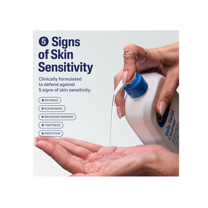 Gentle gel to foam formula deep cleans skin and reduces the appearance of pores. Clinically tested to remove dirt, excess oils and makeup without leaving skin dry or tight. Formulated with a dermatologist backed blend of vitamin B3, vitamin B5 and hydrating glycerine to reinforce the skin's moisture barrier. Defends against 5 signs of skin sensitivity including dryness, irritation, roughness, tightness and a weakened skin barrier.