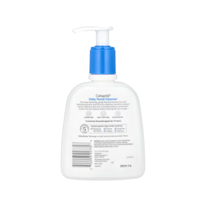 Ideal for combination sensitive skin, Daily Facial Cleanser is clinically proven to deep clean skin and minimize the appearance of pores while effectively removing dirt, excess oils and makeup without leaving skin dry or tight.