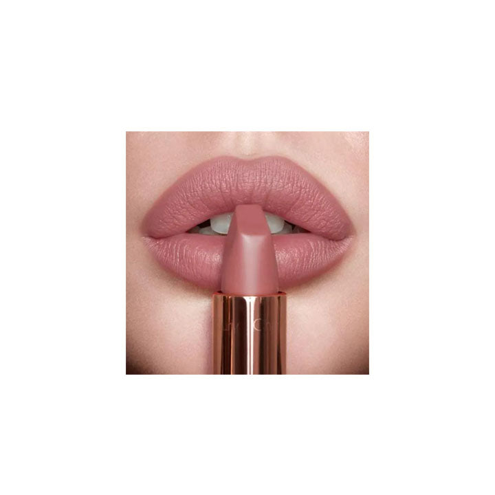One Pillow Talk Original Matte Revolution sold every 2 minutes. On everyone’s lips right now, this iconic matte, nude-pink lipstick is the ultimate celebrity and supermodel lip color, creating MAKEUP MANIA across the globe as the secret to fuller, wider looking lips. Matte Revolution in Pillow Talk enhances the natural hue of your lips so is unique to your skin tone and natural lip color. Create a sumptuous, pillow-y lip in seconds. The universally-loved, best-selling lipstick launched to give all women what Charlotte Tilbury calls ‘the most beautiful lips of your life’. The moisturizing matte formula smooths and shapes the lips of your dreams to allure, tempt and perfect every pout. It’s formulated for every woman at every age and any skin tone. Enriched with nourishing orchid and Lipstick Tree extracts, plus light-reflecting pigments, lips appear softer, smoother and more youthful. Finished with an angled square tip, apply straight from the bullet for the best lips of your life!