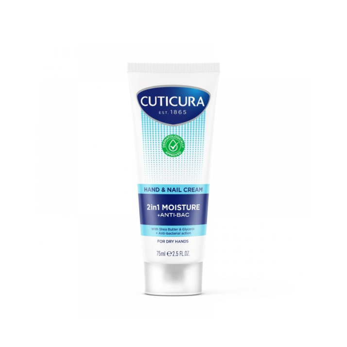 Cuticura 2in1 Moisture + Anti Bac is a hydrating hand cream that relieves, hydrates and protects dry hands. It works by combining super nourishing ingredients and anti-bacterial action to moisturise dry hands whilst providing protection from germs. This moisturising hand cream is formulated with Shea Butter and Glycerine for the ultimate hydration whilst Vitamin E helps protect skin from damage.