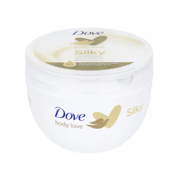 Introducing Dove Body Cream Silky, now available in a generous 300-ml size. Dove Nourishing Body Care Silky Pampering Body Cream is specially crafted to unveil beautifully radiant, silky-soft skin. This opulent body cream is formulated to provide 24-hour moisturization, delivering silky nourishment for dry skin. With consistent use, it enhances your skin's quality over time, ensuring it feels irresistibly softer, smoother, and more radiant.