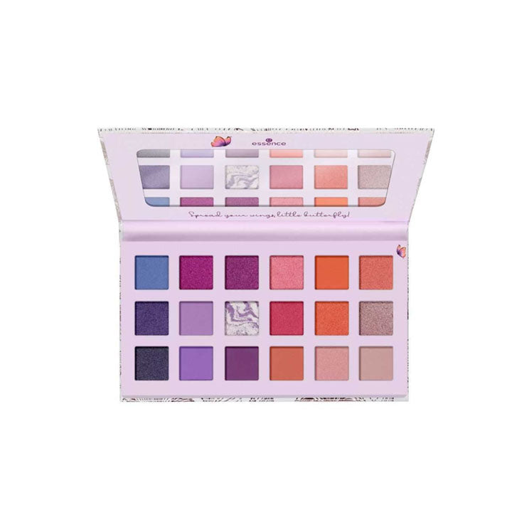 Essence Blooming Wings Eyeshadow Palette 18's 04 I'm So Fly is a vibrant makeup essential designed to elevate your eye makeup game. With 18 stunning shades ranging from soft neutrals to bold pops of color, this palette offers endless possibilities for creating captivating eye looks. The richly pigmented formula ensures intense color payoff and effortless blending, allowing you to achieve both subtle everyday looks and dramatic evening styles with ease. Whether you're aiming for a natural, dewy effect or a bold, statement-making appearance, this palette has you covered. Upgrade your eyeshadow collection with this palette and get creative.