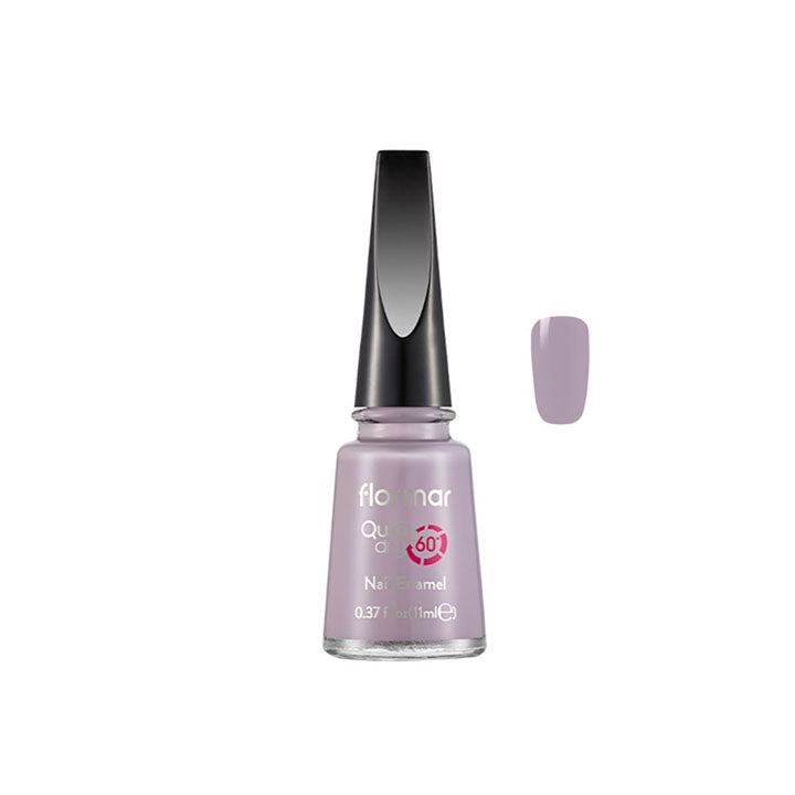 Flormar Quick Dry 60 Nail Enamel 11ml QD26 Soft Lilac is a magnificent shade that can leave you with stunning nails in a matter of seconds. Soft Lilac is a delicate and soothing shade reminiscent of blooming flowers on a spring day. This fast-drying formula applies to your nails with ease and provides a rich color payoff with just one stroke. Since the product is chip-resistant, giving your nails an immaculate look for a very long time without the inconvenience of frequent touch-ups. This nail enamel has a non-sticky finish and a lightweight texture that makes it feel pleasant and weightless on your fingertips. Improve your manicure game with this calming tint for the eyes for a dash of class and refinement.