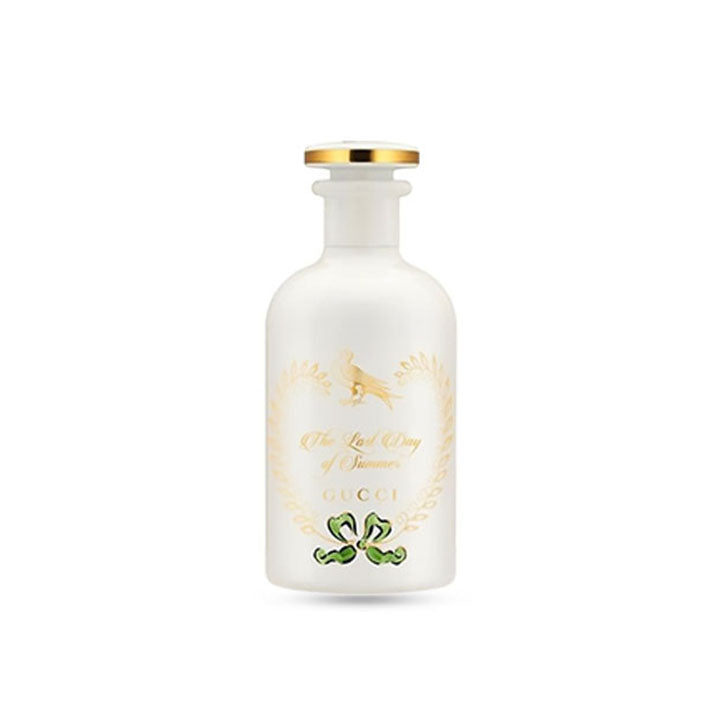 “The Last Day of Summer” eau de Parfum. Evoking the distinctive scent of changing seasons, “The Last Days of Summer” references the House’s connection to the symbolism of the renewal of life and death. The sumptuous and warm fragrance is made up of Cedarwoods, Cypress and Nutmeg, nuanced by powerful woody and earthy notes of Patchouli and Vetiver. Accentuate this fragrance by layering it with perfumed oils and acque profumate from the collection to create a personalized blend.