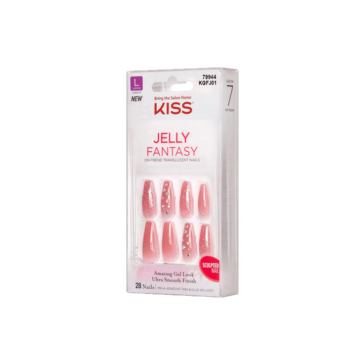 Get in on the jelly trend and wear the hottest looking nails around! KISS Gel Fantasy Jelly sculpted ready-to-wear gel finish fake nails have sheer color, 3D texture, and a coloured glass-like effect that is beyond WOW!