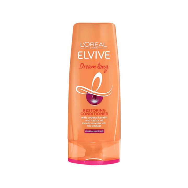 Elvive Dream Lengths system of shampoo, conditioner, treatments and dry shampoo cares for long hair and magnifies looks for the long hair of your dreams. Dream Lengths Restoring Shampoo visibly repairs damage without weigh down, Dream Lengths Super Detangler Conditioner instantly detangles to reduce breakage, Dream Lengths No Haircut Cream Leave-In Conditioner helps seal split ends, Dream Lengths 8 Second Wonder Water Lamellar Rinse-Out instantly transforms long damaged hair in 8 seconds, Dream Lengths Heat Slayer Pre-Iron Spray Leave-In protects against heat damage up to 450F degrees, Dream Lengths Air Volume Dry Shampoo instantly absorbs oil for a long-lasting clean feel with no white residue, Dream Lengths Super Curls Cream Leave-In deeply nourishes and defines curls and waves, and Dream Lengths Frizz Killer Serum Leave-In tames frizz and static.