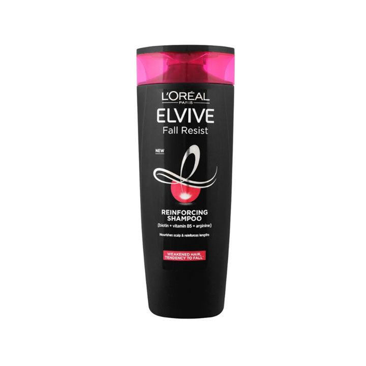 Loreal Paris Elvive Fall Resist Shampoo cleans, repairs and strengthens weak and brittle hair. Everyday our hair is damaged by pollution, seasonal change, daily brushing and styling. This way, your hair feels weaker, thinner and tends to break and fall more easily. Therefore, to compensate for all these damages, this formula enriched with hair supplements such as Arginine, Biotin and Vitamin 5 will repair the hair leaving it looking healthy and strong.