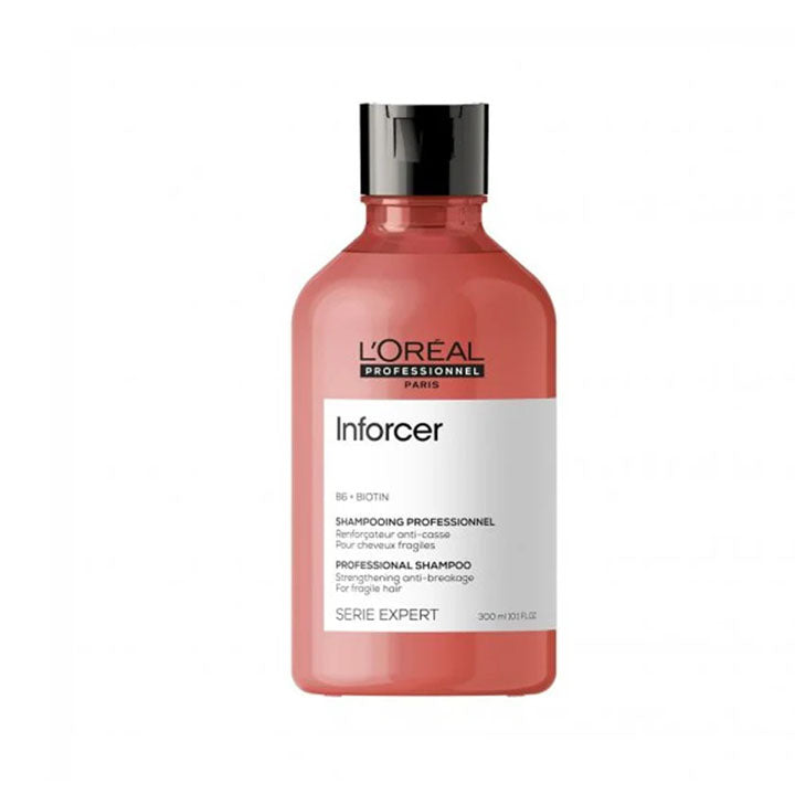 Inforcer Shampoo transforms fragile and damaged hair. Reinforcing formula for normal to fragile hair infused with vitamin B6 and Biotin, for instant reduction of breakage and intense conditioning. A technology specially designed to tackle breakage and split ends. Enriched with strengthening properties of Biotin and Vitamin B6, the shampoo gently cleanses daily dirt and impurities while working to restore hair density and resilience. With continued use the Inforcer Shampoo helps your hair to become more resistant and stronger. The reinforcing shampoo is recommended for: Fragile and breaking hair, especially long hair. For best results, use in conjunction with Serie Expert Inforcer.