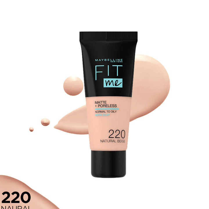 The special feature of the Fit Me Matte & Poreless natural beige 220 by Maybelline New York are light powder particles that lie gently on the skin and thus cover the pores visibly but naturally with a matt finish and make them disappear. The powder particles visibly reduce skin shine, making the foundation suitable for both normal and oily skin. The make-up hugs the skin and withstands the most diverse situations by adapting to the movements of the face. With the matt finish, it looks natural and noticeably emphasizes the radiance of every woman.