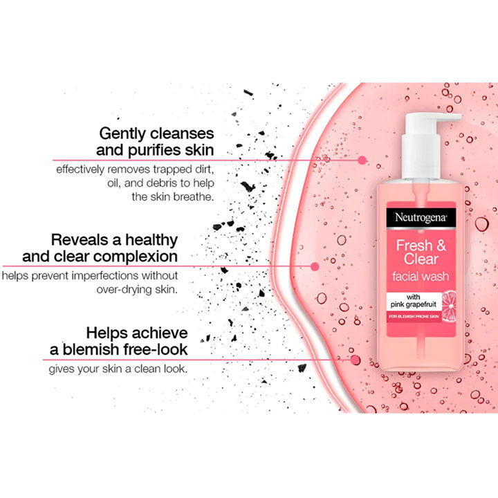 This Neutrogena acne face wash comes with an uplifting blast of pink grapefruit. Neutrogena Refreshingly Clear face wash maximum strength formula developed with dermatologists in Oil-Free Acne Wash Fresh & Clear contains 100% naturally derived grapefruit extract plus Vitamin C to help clear breakouts.