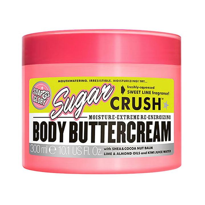 Soap & Glory’s must-have new moisture-extreme, re-energizing, sweet-lime scented body buttercream for supreme skin smoothing! Loaded with shea and cocoa butter, almond and coconut oil, and a super-refreshing triple whammy of lime oil, kiwi juice water, and smoothing lime tree blossom extract, Soap & Glory’s new ultra-rich body buttercream is irresistible, really