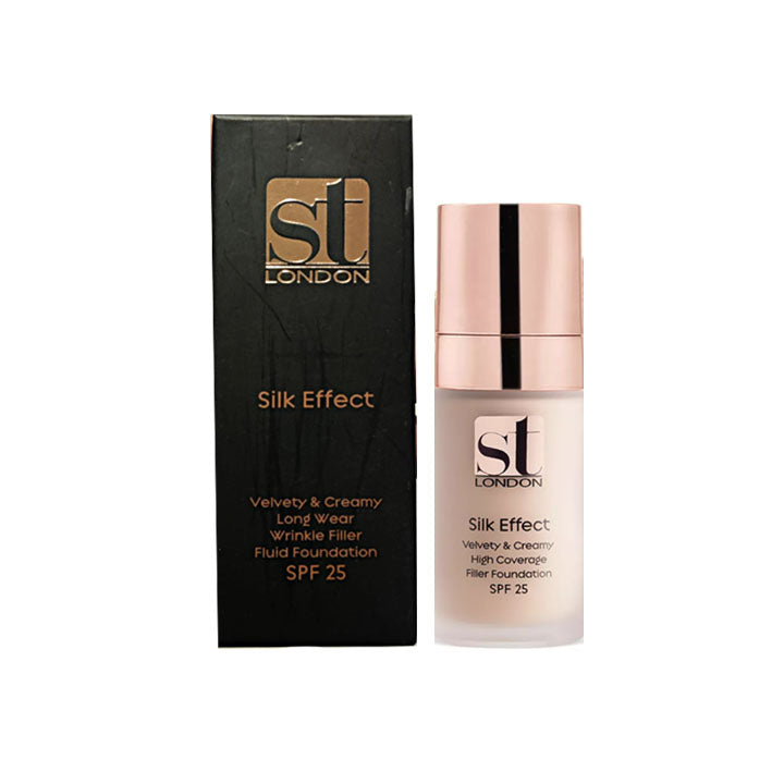 The ST London Silk Effect Velvety Creamy Long Wear Foundation in shade 3W is crafted for a flawless, natural-looking finish that lasts all day. This rich, velvety foundation provides buildable coverage, smoothing over wrinkles and fine lines to give skin a youthful, radiant appearance. With SPF 25, it protects against UV damage while maintaining a soft, breathable feel on the skin. The 3W shade is warm-toned, perfect for those with medium to tan skin tones looking for a natural glow.