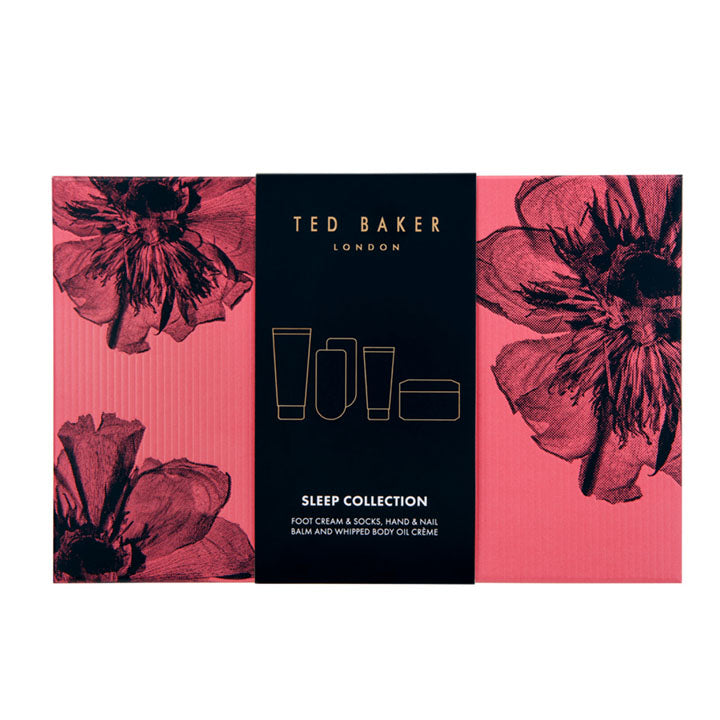 Ted Baker Sleep Collection includes: Nourishing Essentials Overnight Footmask 150ml Nourishing Essentials Hand & Nail Balm 75ml Nourishing Essentials Whipped Body Oil Crème 300ml
