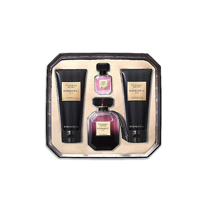 4 Piece Gift Set Includes: 1.7 oz. Eau de Parfum, 3.4 oz. Body Wash, 3.4 oz. Body Lotion, & .25 oz. Mini Eau de Parfum:
