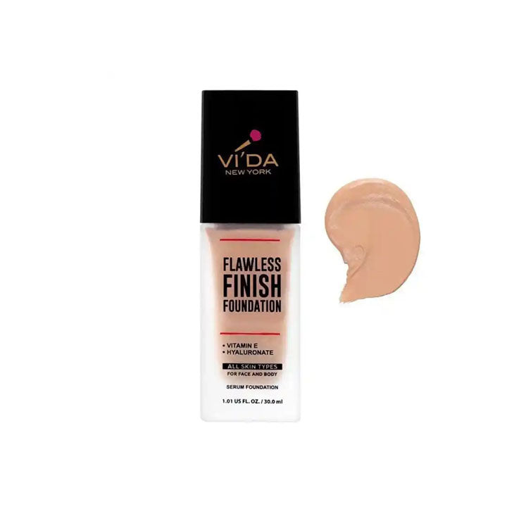 Vi'da New York Flawless Finish 189 Fair is a lightweight, buildable foundation that delivers a smooth, flawless complexion. Infused with skin-loving ingredients, such as hyaluronic acid and vitamin E, it hydrates and nourishes the skin, leaving it feeling comfortable and radiant throughout the day. This foundation offers medium to full coverage, effectively hiding imperfections for a natural finish. The 96 Porcelain shade is ideal for fair skin tones with neutral undertones. Whether you prefer a sheer or more polished look, this foundation offers customizable coverage that lasts.