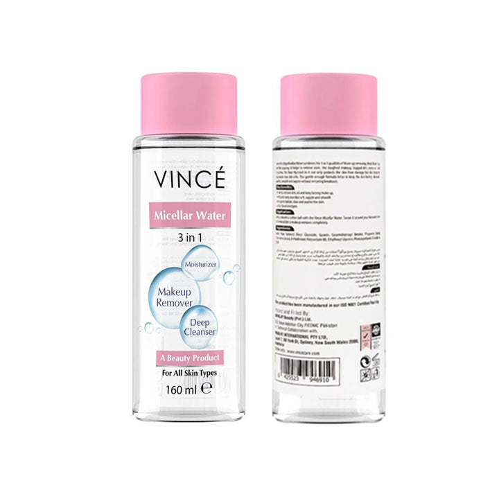 Vince One-Step Micellar Water combines the 3 in 1 qualities of Make-up removing, deep Cleansing, and Moisturizing. It helps to remove even, the toughest makeup, trapped dirt, excess oil and impurities. The Rose Hydrosol in it not only protects the skin from damage but also helps to regenerate new skin cells. This gentle enough formula helps to keep the skin feeling cleansed, purified, smooth and supple without irritating breakouts.