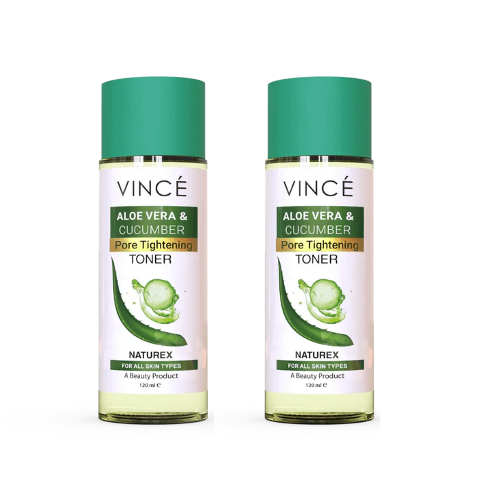 Vince NATUREX Pore Tightening Toner is a natural powerful yet gentle toner developed with the soothing properties of cucumber, hydrating Aloe Vera, and pore tightening qualities of Witch Hazel that altogether helps to reduce the appearance of enlarged pores, removes excessive sebum while balancing skin’s natural moisture, soothes skin irritation after sun exposure, also removes dull skin cells. This natural toner helps to reveal visibly more apparent, smoother, and even-toned skin.