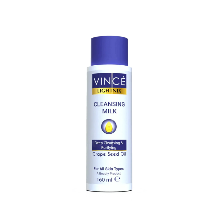 VINCE LIGHTNIX Cleansing Milk is a mild and soft deep pore cleanser enriched with grape seed extract. It penetrates deep into the skin and helps to gently remove grime, dirt, makeup & daily impurities.